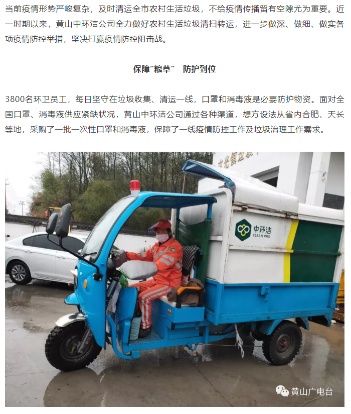 黃山中環潔公司:全市生活垃圾日產日清,全力防控疫情!