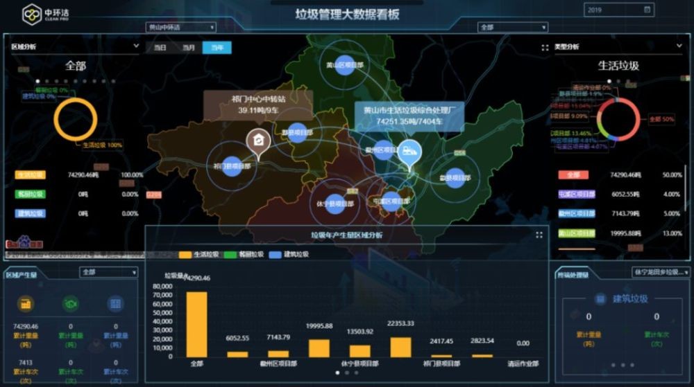 ↑垃圾管理(lǐ)大(dà)數據(jù)看板,統計從各村鎮、縣市(shì)到垃圾綜合(hé)處理廠的垃圾流轉情(qíng)況(kuàng)。