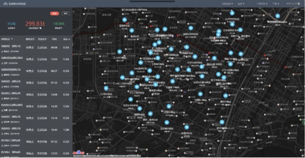 ↑垃圾收運儀表盤,顯示(shì)各中(zhōng)轉站收運垃圾量的詳細信息。